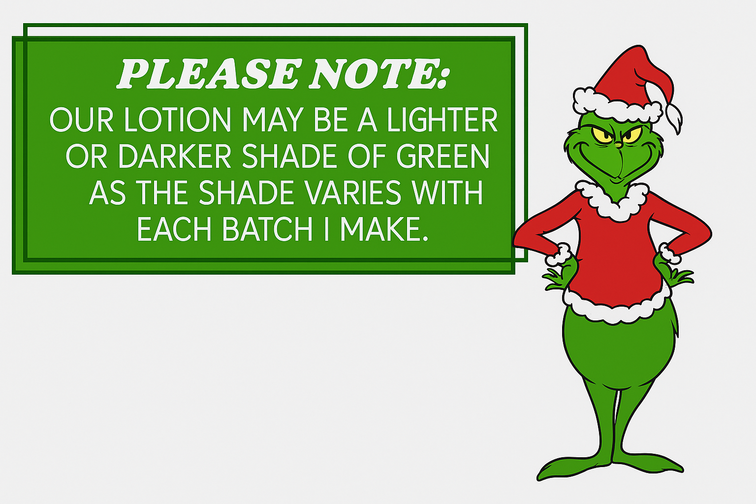 Grinch got ya dry and crusty? Fix that fast with our creamy, dreamy lotion that smells like fresh evergreens and holiday magic (no sleigh required). Made with skin-loving ingredients like shea butter, sunflower oil, and a touch of whimsy to rescue winter skin and leave it soft, smooth, and absolutely non-stinky.