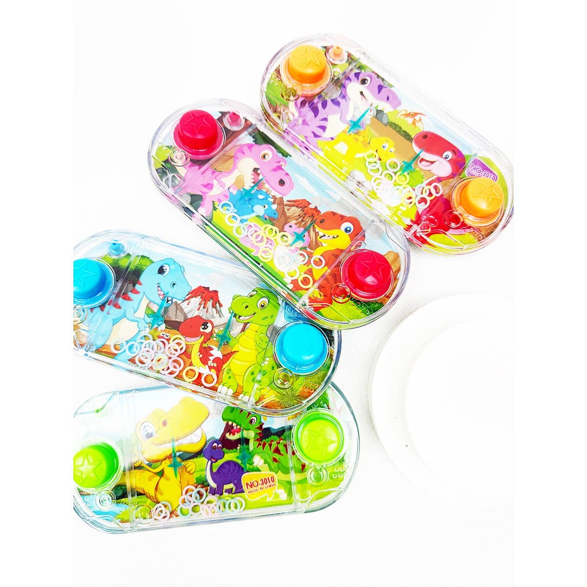 Dinosaur Aqua Rings Water Game -Water games are a kid-powered handheld game that doesn't require batteries for unlimited play and entertainment -20 Pcs Dinosaur Water Game in a Box -4 Color Dinosaur Water Game Assorted